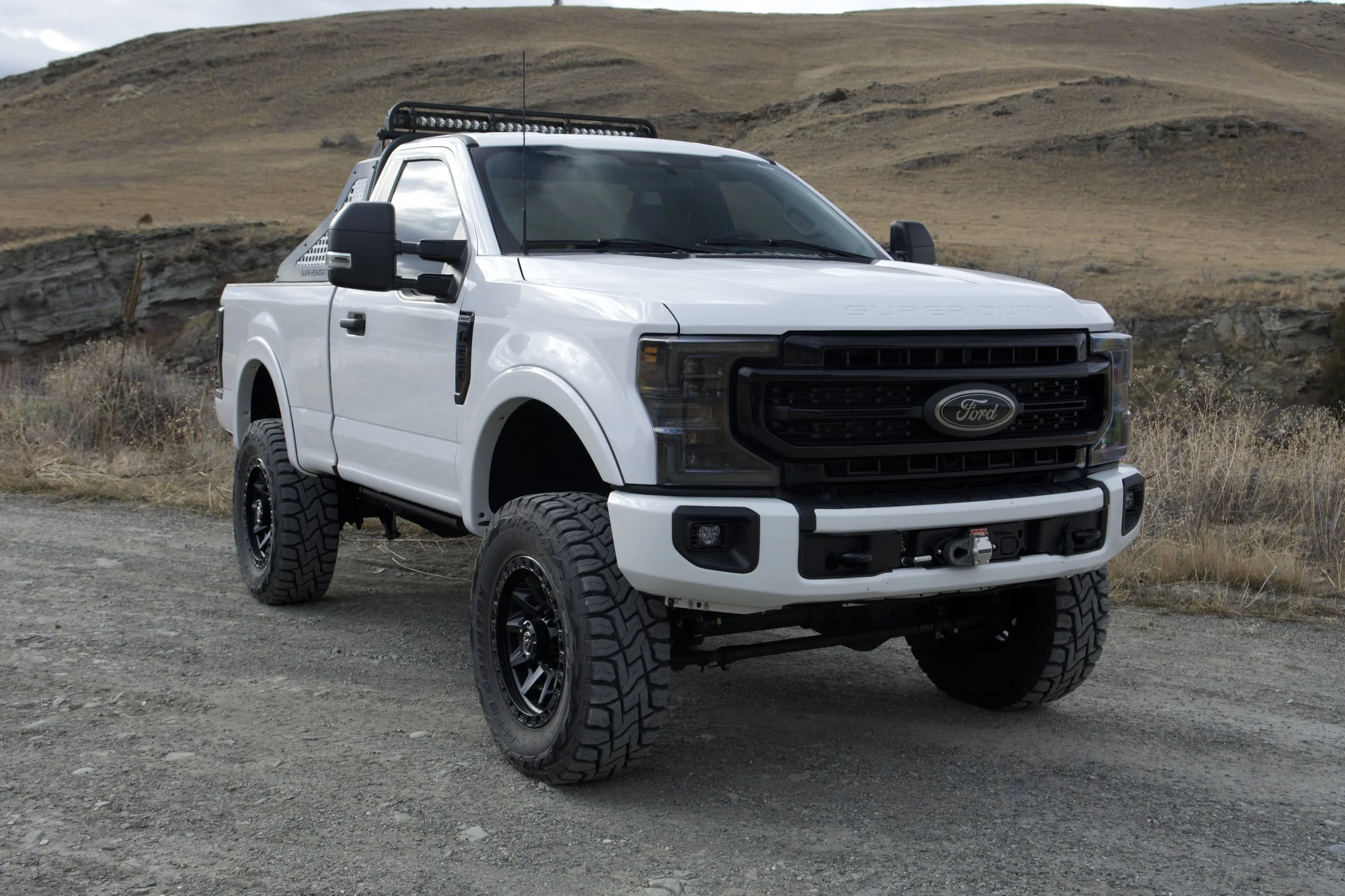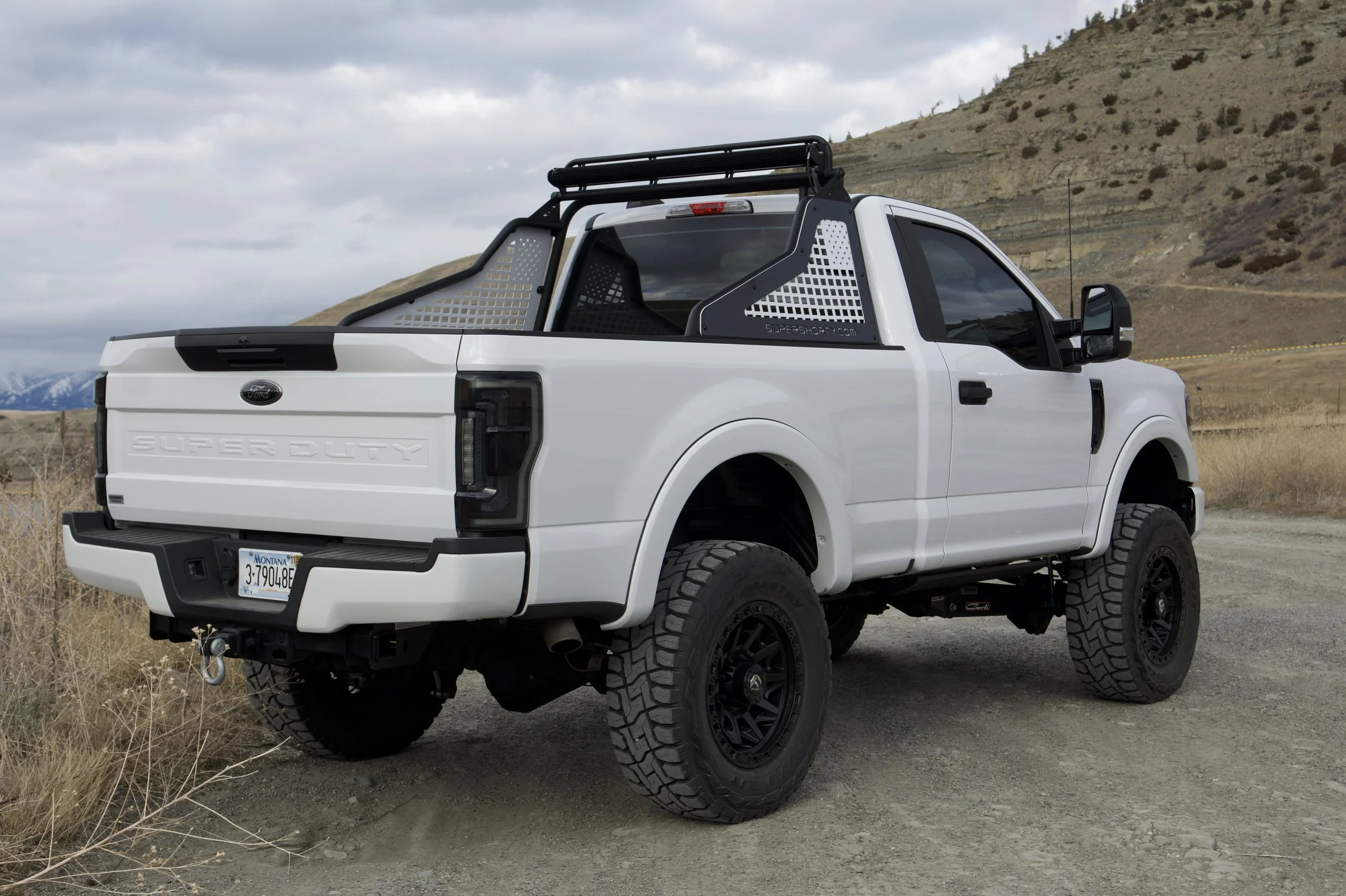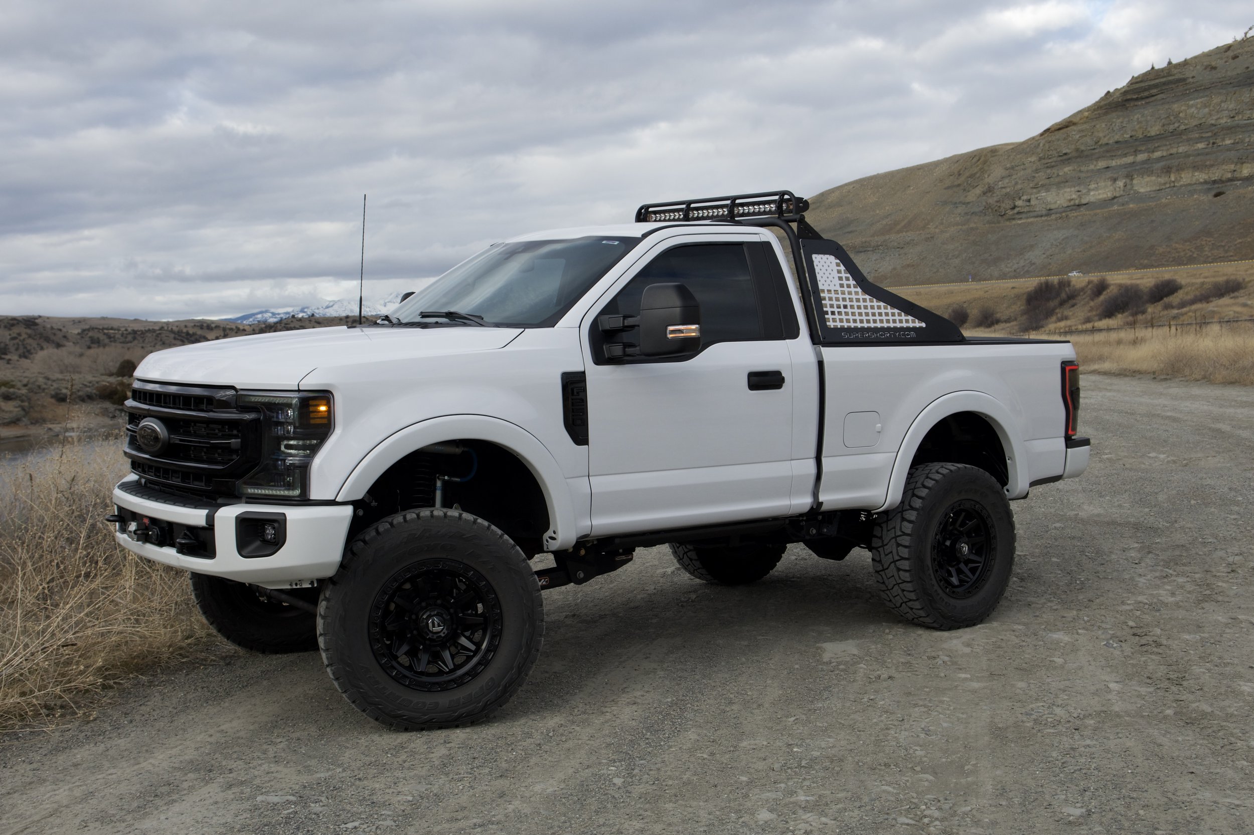 Finished in Oxford White, this SuperShorty maintains a clean, factory-forward appearance while incorporating purposeful exterior and chassis modifications. The short-wheelbase configuration enhances maneuverability without sacrificing the strength, durability, or capability expected of a Super Duty platform.